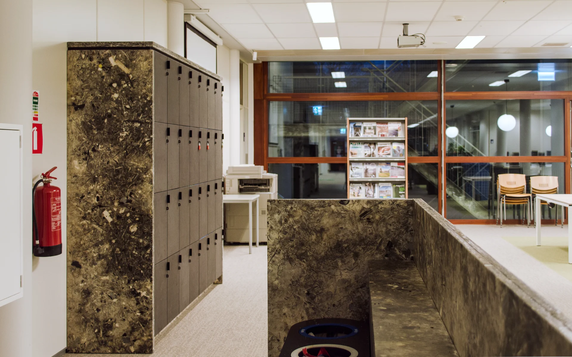 De diversiteit aan overlegruimten was een sleutelpunt: we ontwierpen variaties van afsluitbaar/niet-afsluitbaar, open/meer gesloten, formeel/informeel, en groot/klein. Ook is er ruime, praktische opbergruimte gecreëerd voor boeken, lesmateriaal en studentenwerk, zowel voor docenten als studenten, inclusief afsluitbare ruimtes nabij de werkplekken.